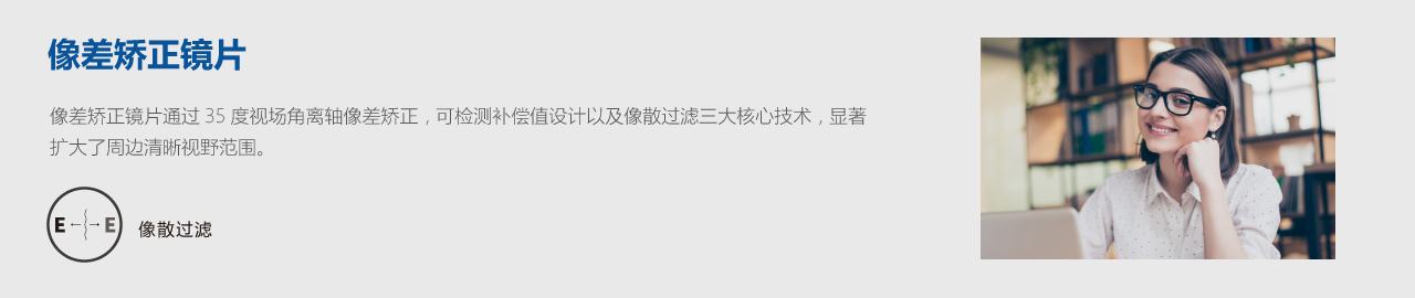 像差矯正鏡片通過35度視場角離軸像差矯正,可檢測補償值設(shè)計以及像散過濾三大核心技術(shù),顯著擴大了周邊清晰視野范圍。相比傳統(tǒng)非球面在佩戴舒適度、初戴適應性以及戴鏡后的成像對比敏感度上有明顯改善;尤其戴鏡后檢測對比敏感度相比球面鏡片提升20%以上,是一款專門為追求高質(zhì)量視覺品質(zhì)的遠視及近視人群而設(shè)計的功能型鏡片.
